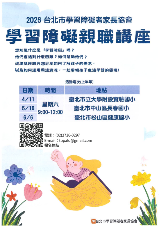 二、旨揭親職講座上半年共辦理3場次,辦理時間、地點及報名 表單QRCode請參閱附件。