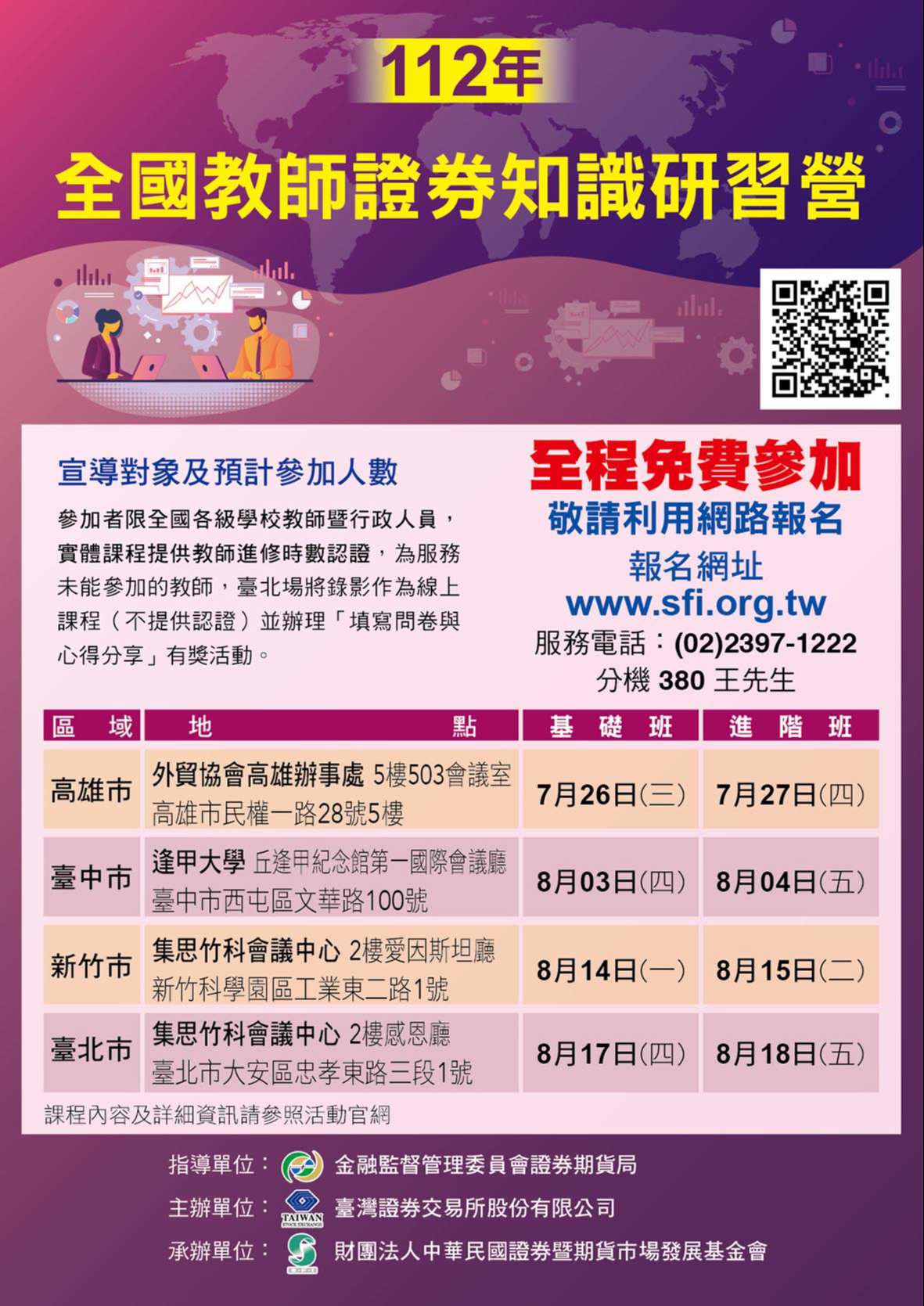 一、依據財團法人中華民國證券暨期貨市場發展基金會112年6 月28日證基(宣)字第11200006722號函辦理。